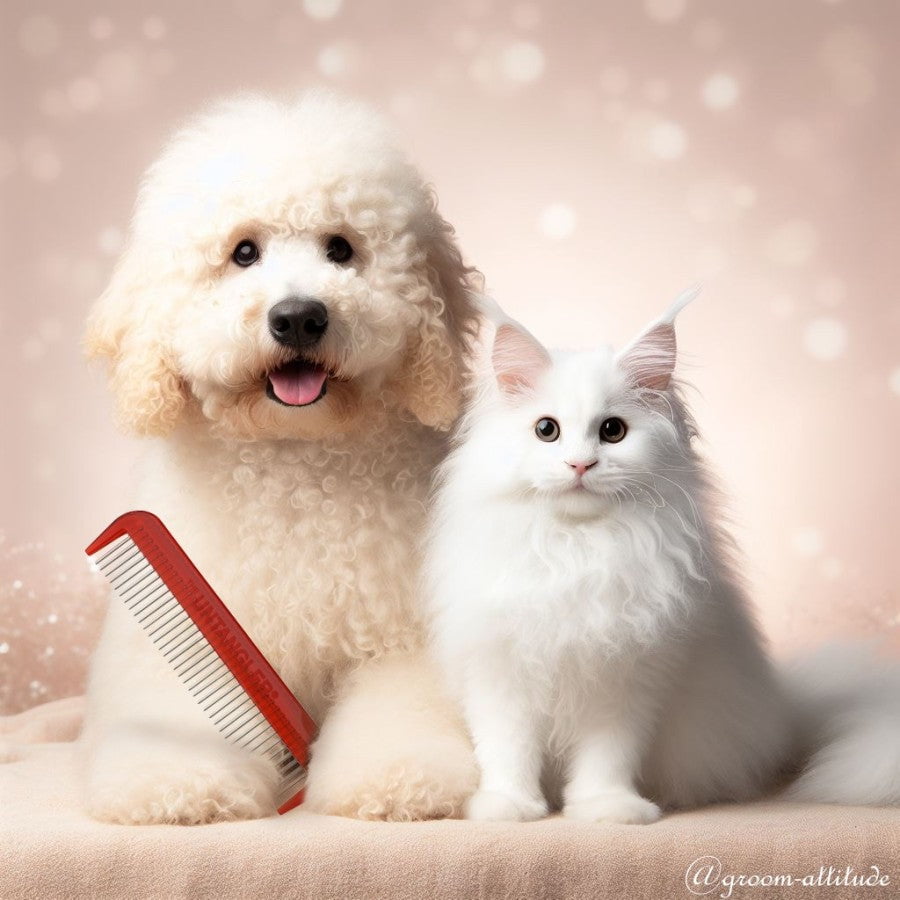 Hold the mat near the skin and gently comb from the outer edge inward. Soften stubborn mats with a pinch of cornstarch or detangling spray before combing. Daily combing prevents mat formation and keeps coats clean.